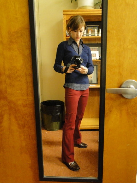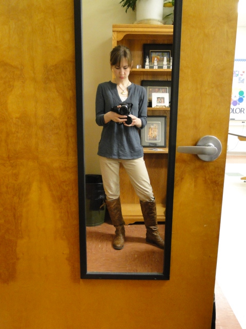 Day 8: Went with a more relaxed/casual outfit today. My first choice would've been sweats and/or a Snuggie, but probably not so work appropriate.
